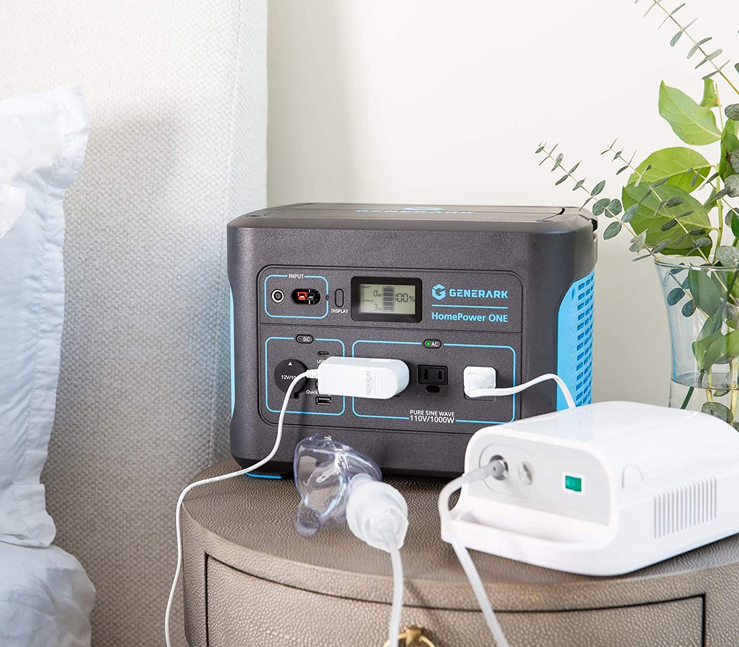 Geneverse 1002Wh (1x2) Solar Generator Bundle: 1X HomePower ONE Portable Power Station (3X 1000W AC Outlets) + 2X 100W Solar Panels. Quiet, Indoor-Safe Backup Battery Power Generator For Home Devices