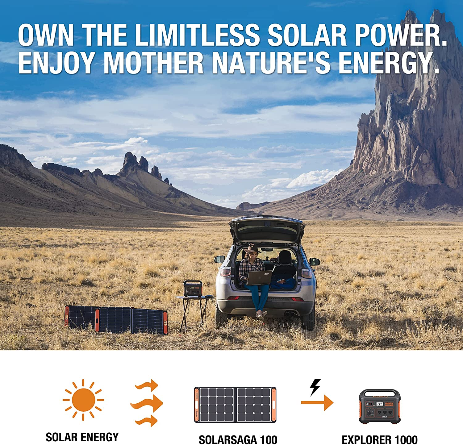 Jackery Solar Generator 1000, 1002Wh Capacity with 2x SolarSaga 100W Solar Panels, 3 x 1000W AC Outlets, Portable Power Station Ideal for Home Backup, Emergency, Outdoor Camping
